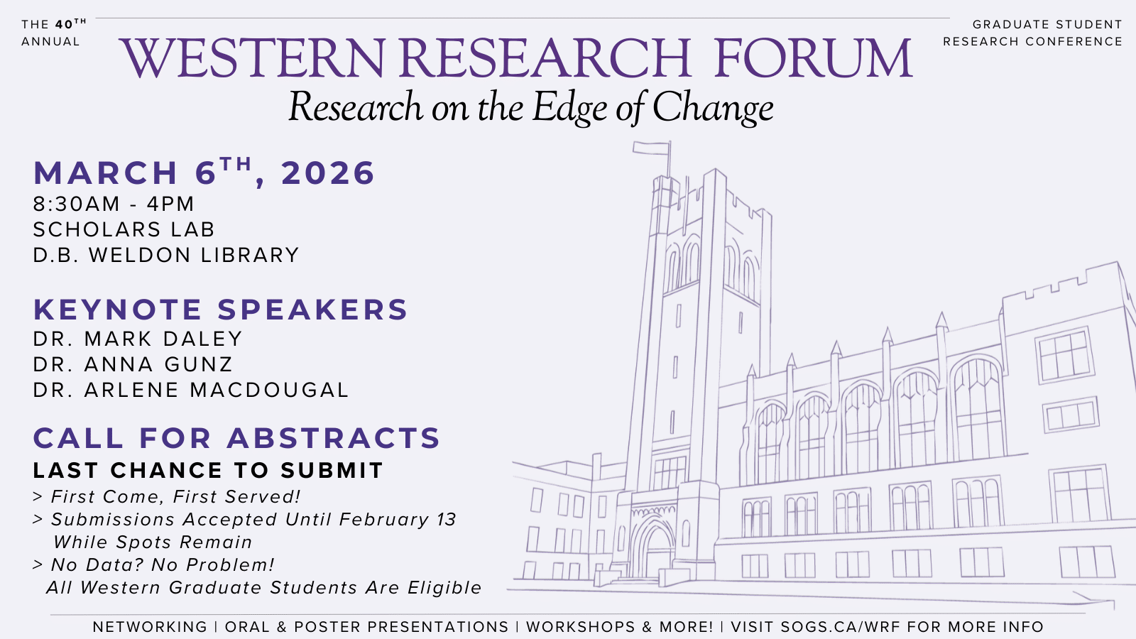 The Society of Graduate Students is proud to host the 39th annual Western Research Forum: Interdisciplinary Research in the Digital Age.