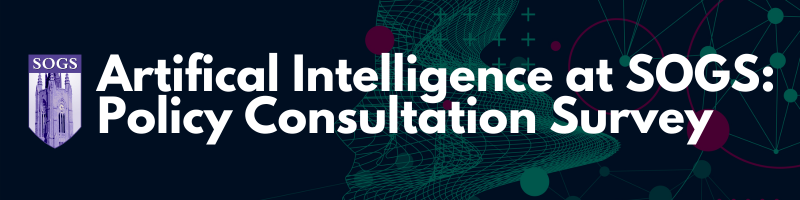 The Vice-President Academic is seeking graduate student responses regarding artificial intelligence and its usage at SOGS. We are looking for feedback and data from students to determine if a artificial intelligence policy is required.